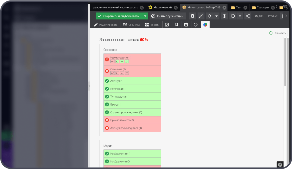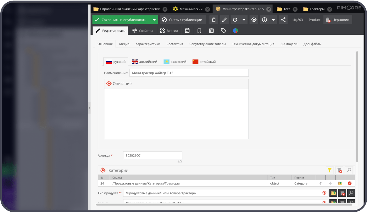 • Возможность автоматически обогащать контент продуктов из вашей ERP. Платформа позволяет добавлять атрибуты, описания, документацию и другие данные.